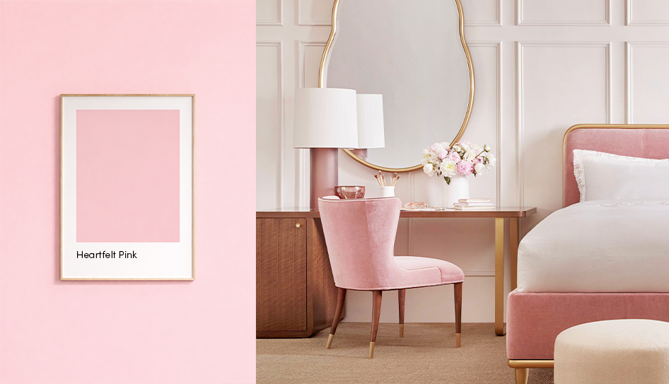 日本色彩協會 JAFCA 選出的 暖心粉 Heartfelt Pink,則延續了這份安定,卻多了一層行動的溫度。JAFCA 將它定義為一種鼓勵擁抱變化的顏色,既承載粉色的幸福與寬容,也帶有向前邁進的意志。它來自對社會氛圍的觀察:在長期停滯與壓抑之後,世界開始出現新的轉折,人們渴望用更柔軟卻更堅定的方式重啟生活。帶入室內設計時,暖心粉與雲舞白一同使用,可以在牆面、織品或局部家具細節上創造「情緒緩衝帶」,讓空間在理性結構與人性溫度之間找到平衡。