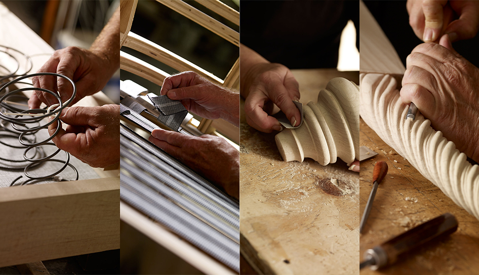 對 Baker-McGuire貝克傢俱 而言,真正的差異往往存在於外觀看不到的地方,從被布料包覆、卻依然細緻打磨的內部框架,到彈簧系統的手工調整密度,再到對木材等級的嚴謹選料標準,這些工序不會直接被看見,卻會在多年使用後,決定家具是否仍能維持原有的穩定度與完整線條。