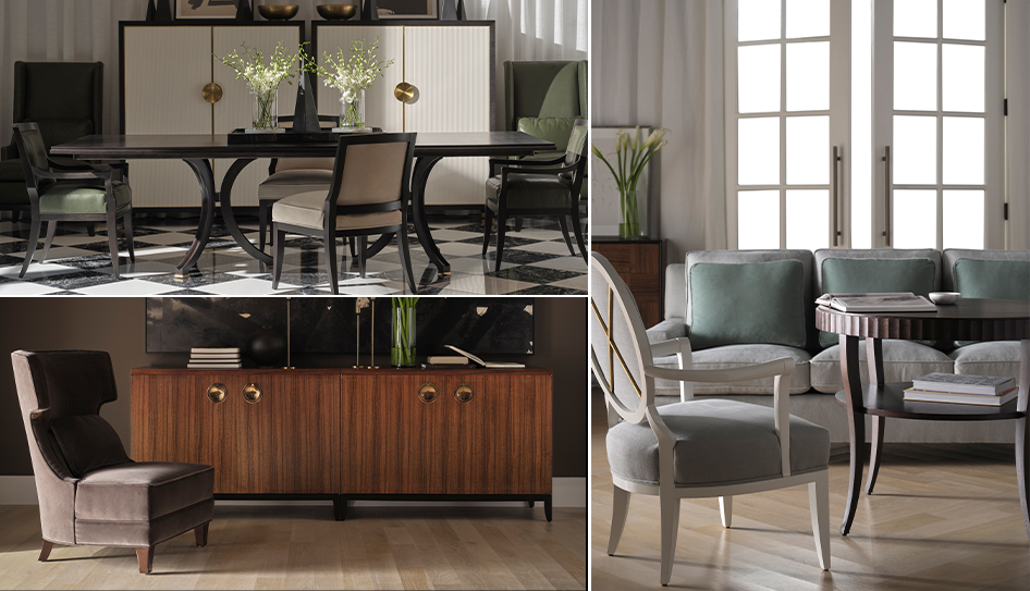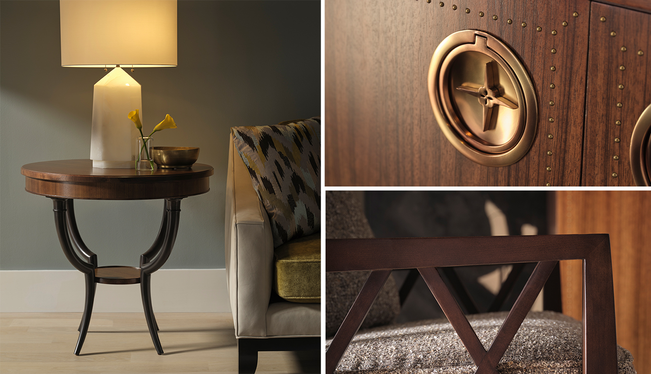 從整體來看,The Baker Reserve Collection 共收錄二十餘件家具作品,涵蓋單椅、茶几、餐桌與收納櫃等多個品類,材料則以胡桃木貼皮、刷紋松木、金箔飾面與精緻青銅金屬件為主。這些材質經過工藝精細打磨與塗裝,呈現出溫潤而深邃的質感,使每一件家具都帶有安靜卻堅定的存在感,在經典與現代之間取得恰到好處的平衡。