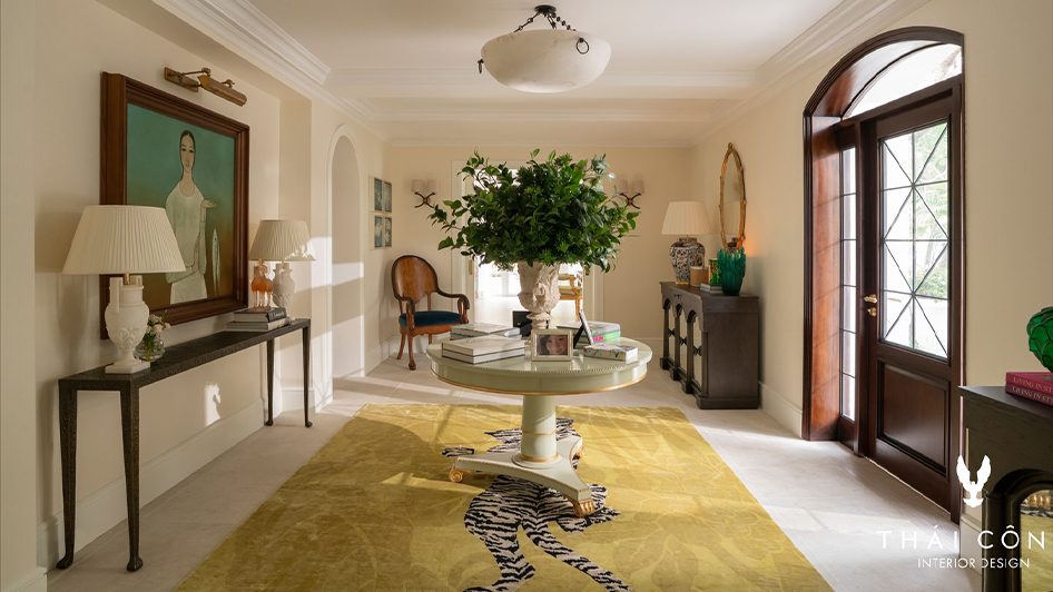 在 The Hampton House 的改造中,THÁI CÔNG INTERIOR DESIGN 以清晰的空間架構承接美式住宅的生活尺度,並以在地藝術作品為空間加入文化脈絡,使居所不只具備完整機能,也保有可被長期欣賞的美感深度。