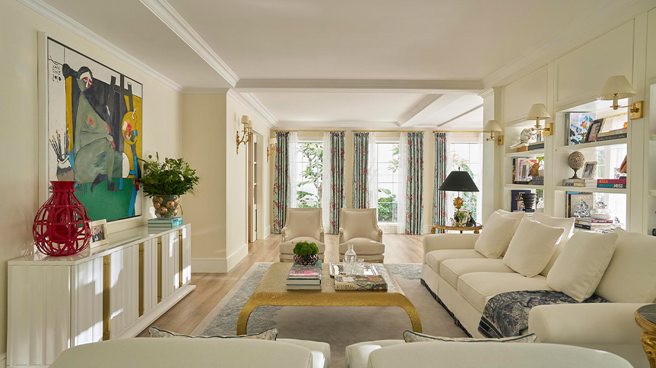 THÁI CÔNG 於本案中選用 Baker-McGuire 貝克傢俱,讓家具在空間中承載交流、休憩與日常使用。沙發、單椅與茶几圍繞中央場域展開,使客廳成為一處可停留、可使用、也能細細觀看藝術的生活核心。