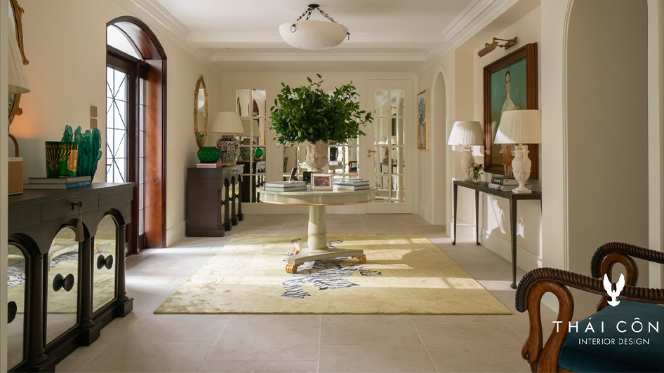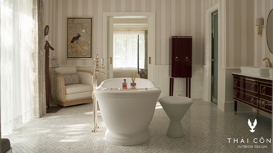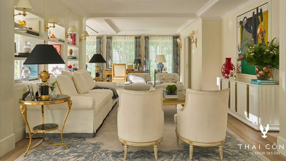 座落於越南胡志明市高端住宅與外籍人士聚集的 Thảo Điền 區域,一座佔地約 1,300 平方公尺 的別墅住宅中。由 THÁI CÔNG INTERIOR DESIGN 操刀改造,整體設計以美式鄉村住宅為靈感,透過充裕的空間尺度與清晰的室內配置,呈現典型美國住宅的生活語彙。