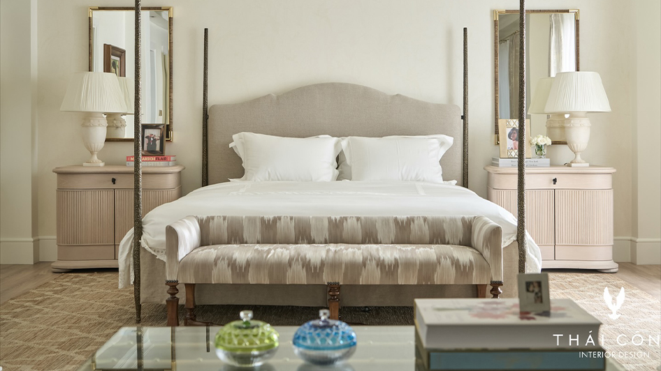 以柔和色調與經典比例為核心,透過細膩的材質選擇與線條配置,營造安定而舒適的休憩氛圍。牆面圖紋與織品質地為空間注入溫度,床頭與床邊家具以圓潤輪廓與一致語彙串聯,讓視覺層次保持平衡而不顯繁複。自然光與柔和燈光在室內交織,使空間在白日與夜晚皆保有放鬆節奏,回應臥室作為「回到自己」的生活場域,適合長時間停留,也經得起日常使用的反覆考驗。