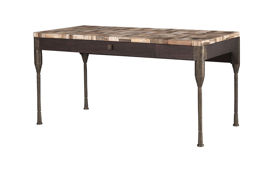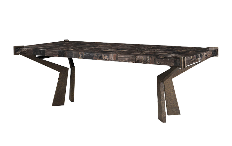 在 Bill Bensley 的設計語彙中,自然材質是展現空間氣場的靈魂。令人著目的「木化石 (Petrified Wood)」,起源是數百萬年前馬達加斯加史前森林被火山灰瞬間掩埋後,歷經漫長的礦物轉化而成的天然奇蹟,完美封存古老樹木的年輪與生命紋理,物理特性卻已蛻變為摩氏硬度達 7 的半寶石,其堅韌程度甚至超越花崗岩,具備耐刮、耐熱且絕無孔隙的永恆特質。木化石家具目前被視為高端訂製家具市場中最具收藏價值的天然材質之一。