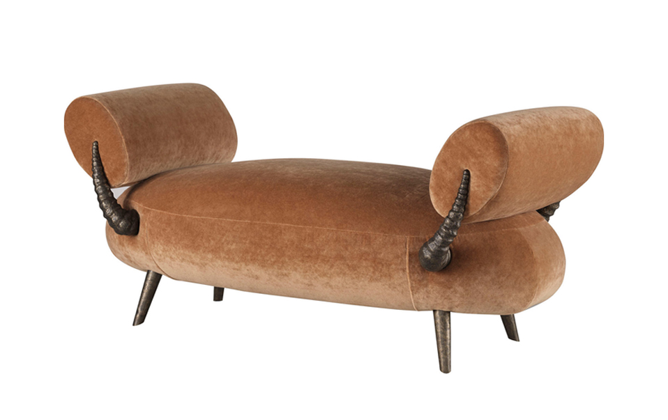 圓潤厚實的長凳以雕塑般體量呈現,兩側角形細節低調卻充滿力量,將野性的象徵轉化為家具語彙,在柔軟與支撐之間建立穩定比例。將玄關打造成具有藝術張力與迎賓儀式感的開場。