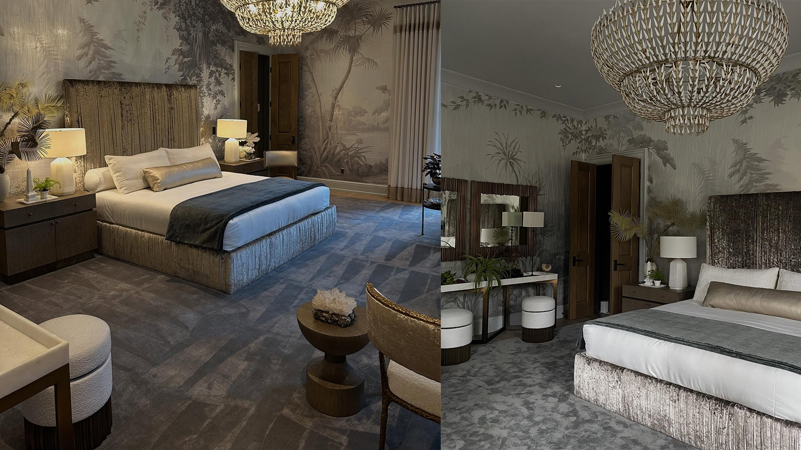 在 Flower Show House 的場景裡,家具形成一種沉穩而優雅的空間節奏。從客廳的光影與對話,到臥室安靜而舒適的休憩氛圍,Modern Glamour 在細節之中慢慢展開。