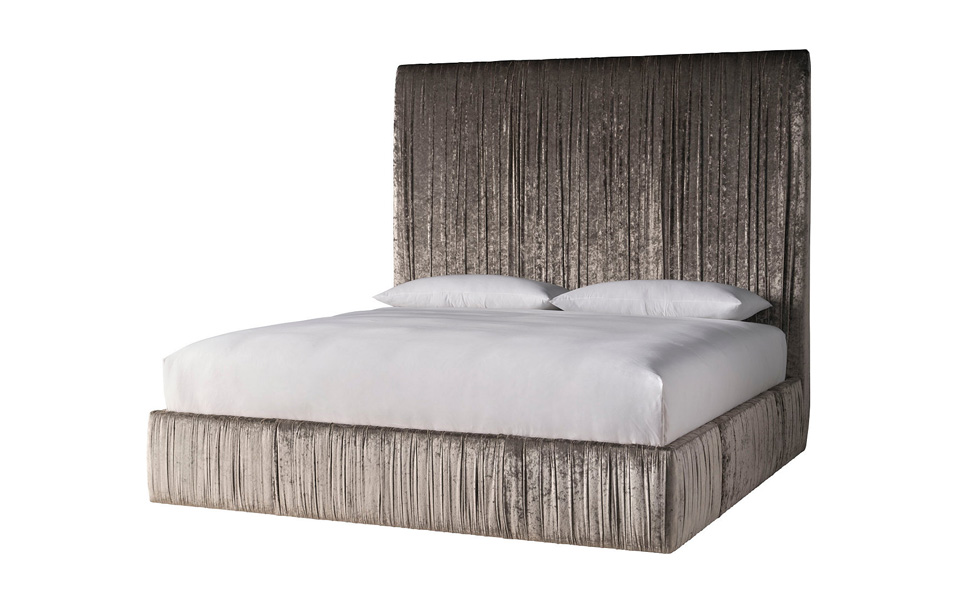 在 Flower Show House 的臥室空間裡,床成為整個空間的起點。床頭板與床身以層層展開的布面紋理構成,靈感來自火山熔岩在地表鋪展的形態。線條沿著床頭向兩側延伸,帶出沉穩而緩慢流動的力量,也讓臥室在安靜之中保有自然地景的張力。